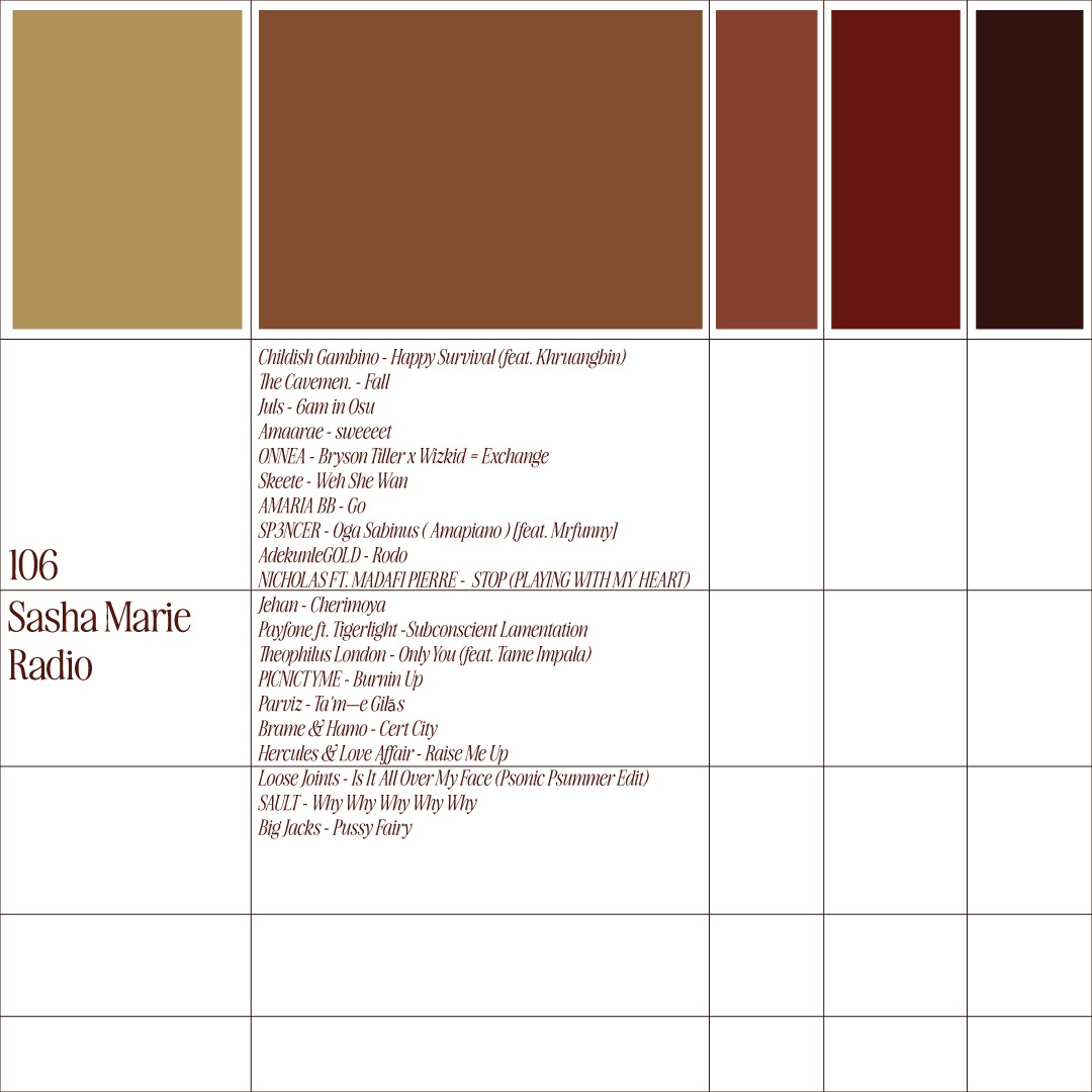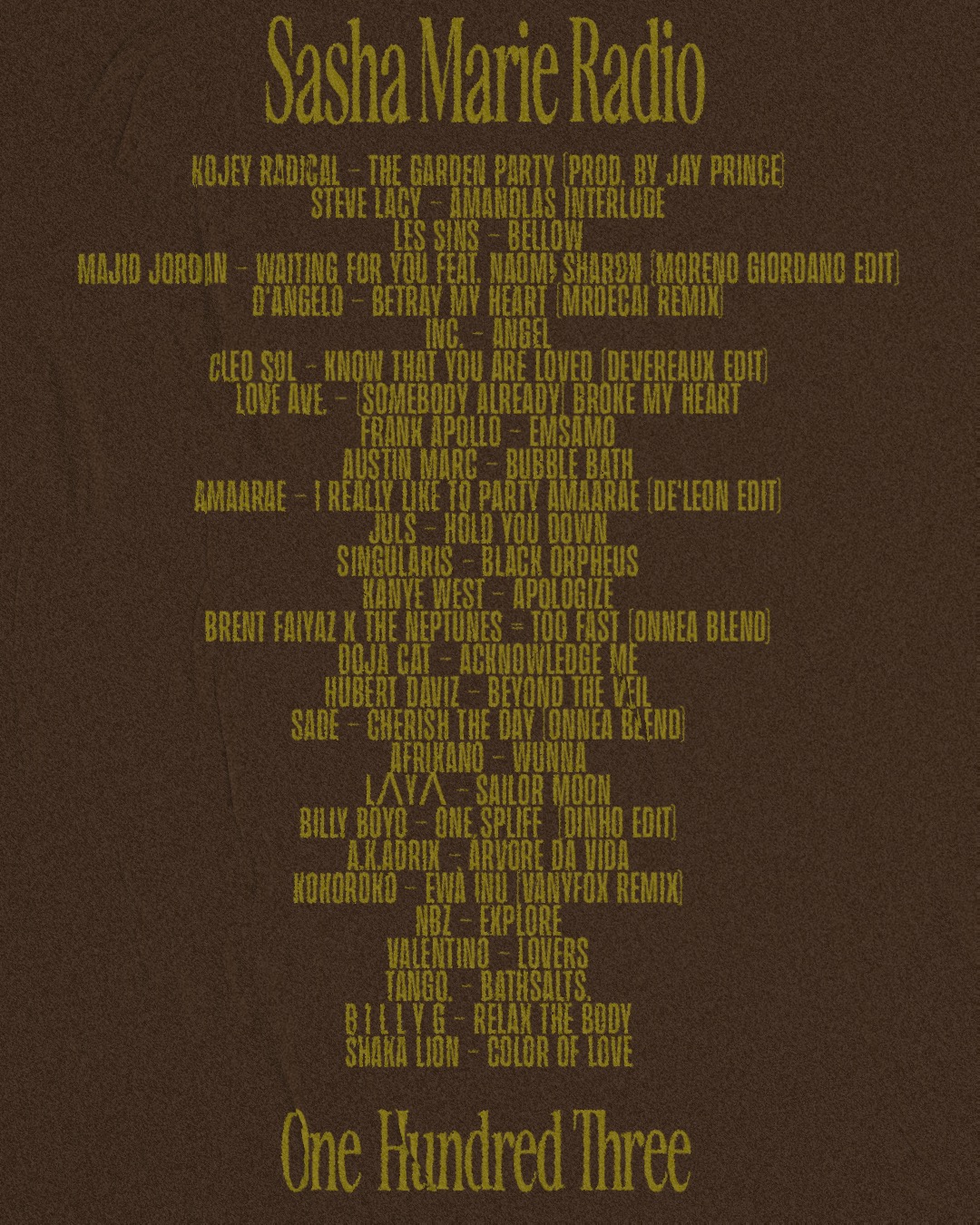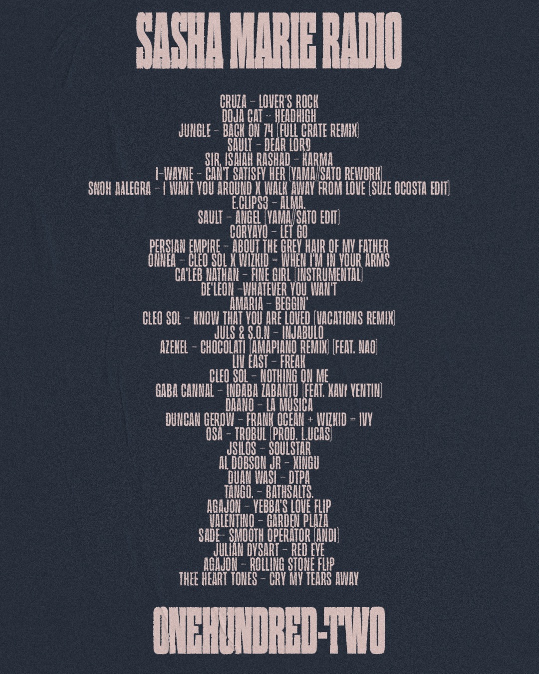 Giving thanks for the first three completed episodes of Sasha Marie Radio. Each mix has showcased a variety of sounds and genres that take you around the world. There are no rules or boundaries with this show, just feelings.